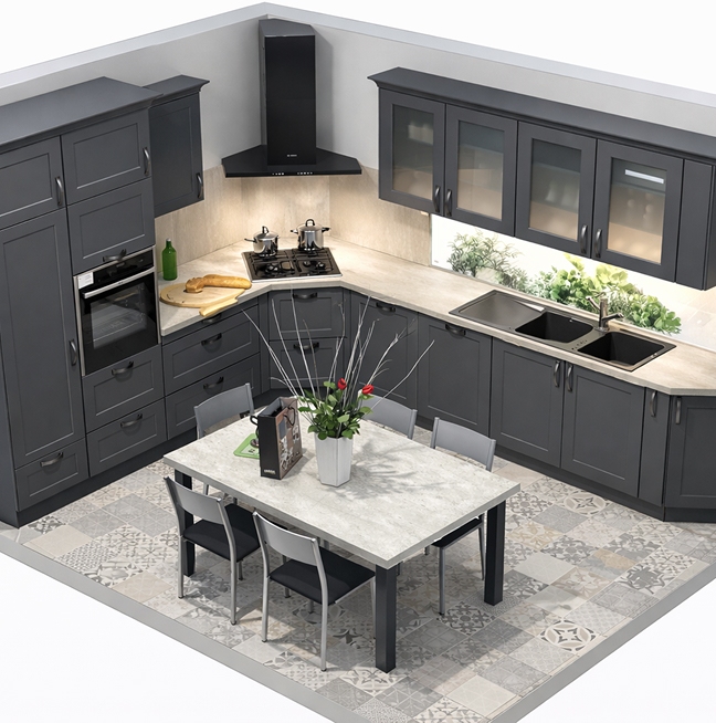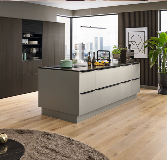 Conception de cuisines équipées alliant l’ingénierie allemande au design italien pour un espace culinaire ergonomique, esthétique et durable.